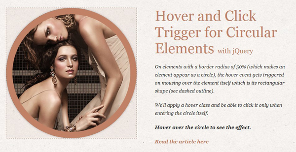 一款jQuery实现的圆形元素悬停和点击触发效果。触发事件只能在圆形元素,而不是它的边框。