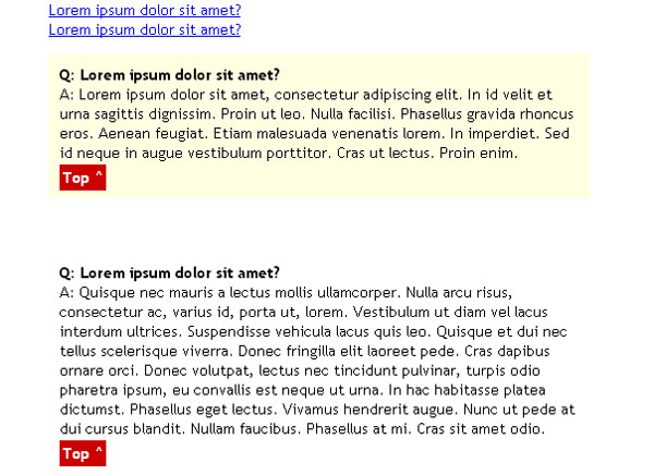 jQuery滑移链接FAQ问答效果