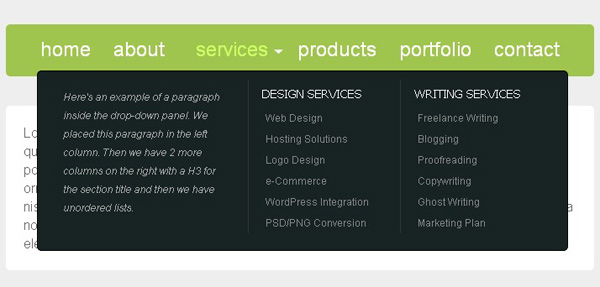 CSS3墨绿色下拉菜单