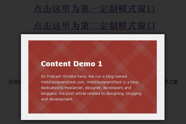 jquery可定制弹出窗口是一款弹出层灯箱效果插件。