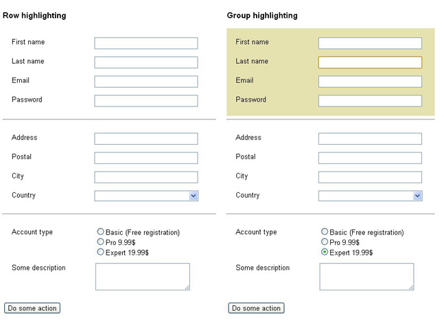 jquery聚焦表单高亮是一款可以让表单整体高亮显示,也可以控制表单内的某个元素高亮显示。