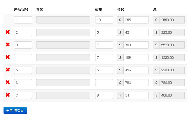 jQuery发票使用引导是一款支持自定义自动完成发票总价,让你更清楚的看到物品清单信息。