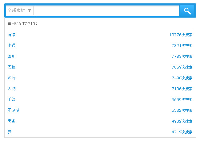 jquery蓝色搜索框是一款多功能带有下拉框的宽屏蓝色搜索表单。