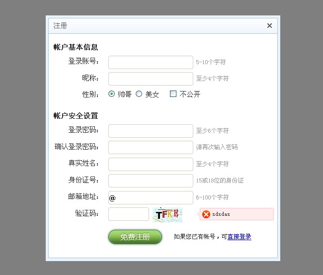 jquery弹出注册框