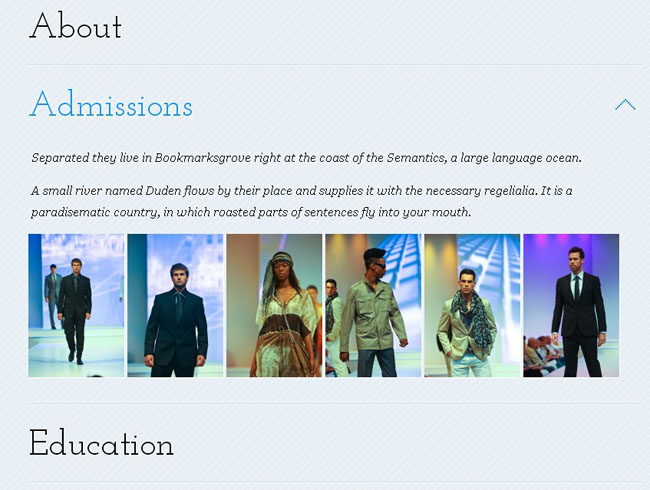 jq+css3下拉滑动选项卡是一款基于jquery+css3实现的响应式下拉滑动手风琴。
