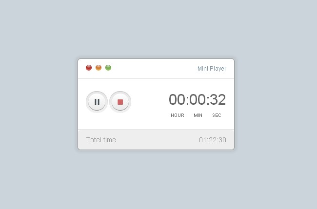 css3迷你播放器面板是一款仿Mac电脑的窗口风格设计,整个面板分成三部分,顶部由标题和小化、大化以及关闭按钮组成。