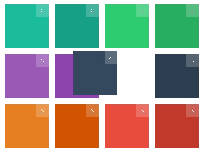 jQuery带删除按钮拖动排序是一款可以拖放调整大小的网格插件Gridly,拖动改变网格间的顺序,删除网格后后进行重新布局。