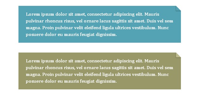 纯css3实现的折角效果是一款纯css3实现的无需图片和js代码既可以实现类似图片的折角效果,折角大小和角度完全通过样式定义。