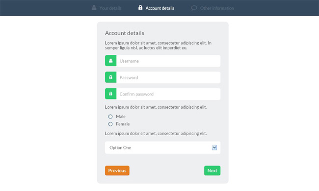 jQuery圆形修边注册表单是一款基于jquery+css3实现的扁平分步骤注册框。