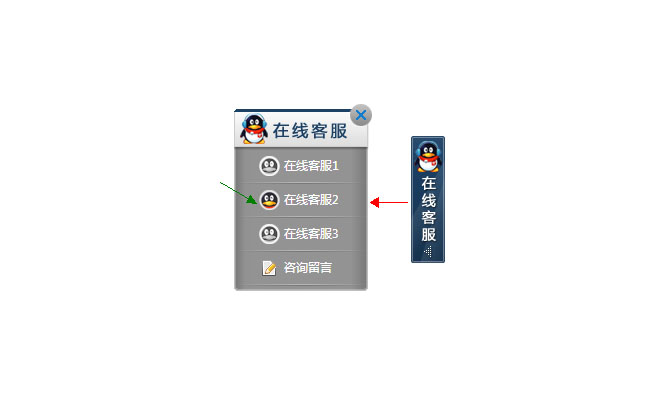 jquery动感在线客服是一款基于jquery的在线客服代码,默认是展开的,点击关闭按钮弹性收缩;再次点击即展开,并能分辨在线或非在线状态。