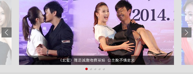 腾讯qq娱乐频道焦点图是一款banner焦点图,左右支持全屏,两侧图片朦胧显示,中间图片高亮显示,底部带有切换按钮。