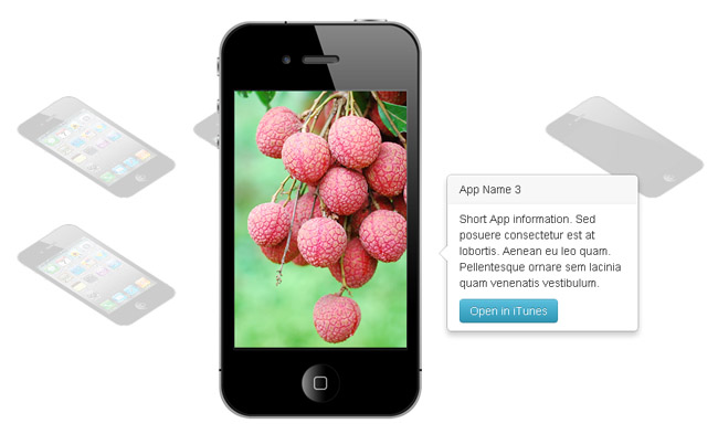 jQuery手机3D展示特效是一款手机默认平铺倾斜显示,鼠标点击图片手机3D立体带描述显示,支持自动延迟切换幻灯片。
