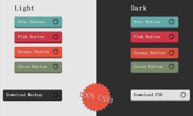 CSS3实现彩色凹凸按钮是一款百分百CSS3实现的鼠标点击按钮凹陷,放开恢复原状的菜单按钮。