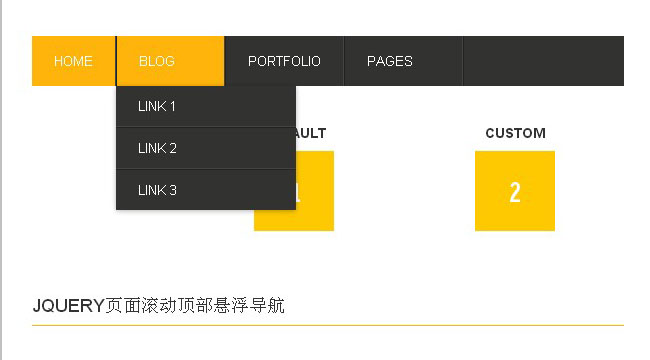 jQuery页面滚动顶部悬浮导航是一款带二级下拉菜单的jQuery悬浮导航,导航可跟随页面滚动一直出现在顶部,很实用。