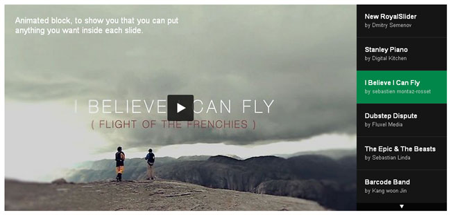 视频画廊RoyalSlider插件是一款基于jquery实现的右侧选项卡切换的视频切换特效代码。