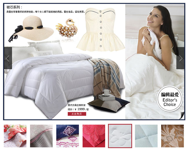 带缩略图切换的jQuery相册特效是一款某家纺商城的slide相册特效代码。