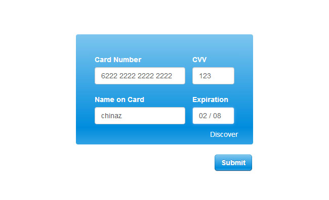 信用卡表单验证插件Creditly是一款直观的信用卡表单验证插件,复制HTML,CSS和JavaScript在几秒钟内得到一个直观的信用卡表格。