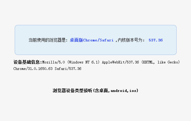 jquery实现浏览器嗅探器特效是一款可以把当前使用的浏览器类型、内核版本号和设备基础信息读取出来。