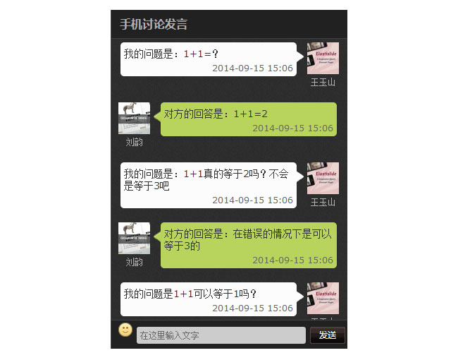 jquery仿微信聊天对话窗口滚动样式是一款模仿微信对话,支持手机触屏拖动窗口。