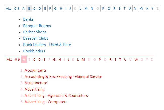 jquery按字母顺序过滤列表是一款jquery listnav分类插件按英文字母顺序图片分类和文字列表分类。