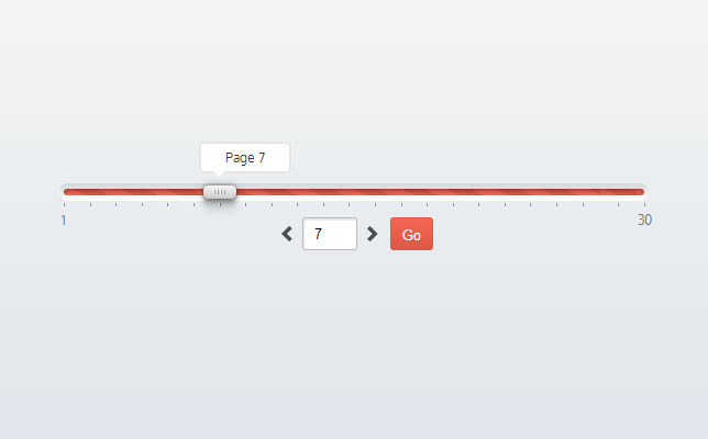 jQuery可拖动分页插件是一款具有滑动条,可以拖动滑动条快速跳转到任意页面,另外你也可以点击翻页图标来实现翻页,非常方便和实用。