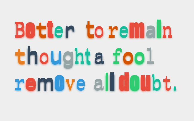 CSS3带阴影五彩文字特效是一款具有卡通形象的CSS3五彩文字特效,虽然没有迷人的动画效果,但是五彩缤纷的文字展现在屏幕上也是非常酷的,再加上每一个文字都有不同角度的阴影效果,加上漂亮的英文字体,让整一个文字特效显得非常出色迷人,大家可以在宣传广告页面试试这款CSS3文字特效。