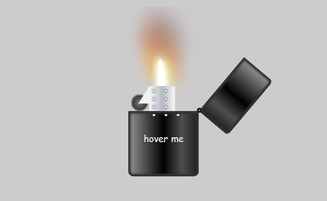 CSS3实现打火机火焰特效是一款很酷的纯CSS3动画特效,它是一个可以点燃的打火机,当你用鼠标滑过这只打火机时,打火机就会打开,然后开始出现火焰燃烧的动画特效。