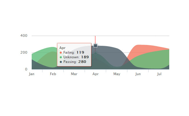 HTML5 SVG区域线图表是一款基于HTML5和SVG的图表应用,这款图表是用区域块来表示一种数据的,用区域线来表示该项数据在图表的范围,每一块区域都可以定义自己的颜色,这样可以让图表数据非常清晰明了。另外,我们只要将鼠标移到区域线上,即可弹出一个该坐标点的图表数据详情。