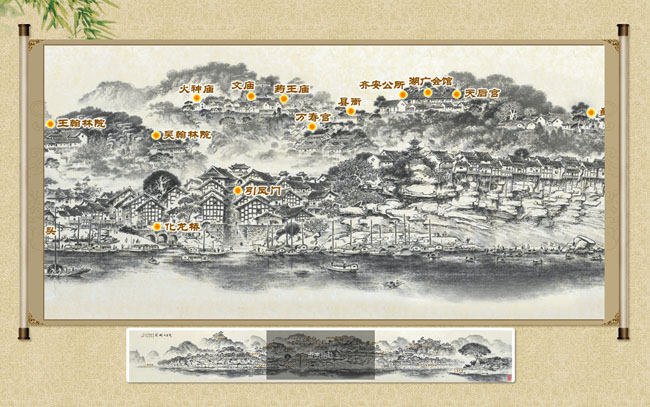 jquery全景拖动查看效果是一款拖动全景小图,卷轴中的大图显示相应部分,大图中可定义焦点按钮。