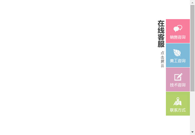 jquery右侧固定层QQ在线客服代码是一款默认收缩悬浮在网页右侧,鼠标点击滑出在线客服。