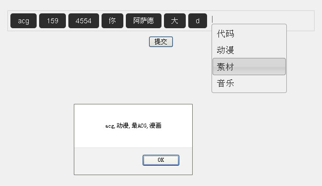 jquery点击文本框提示标签自动补全是一款关键字标签value值提交代码。