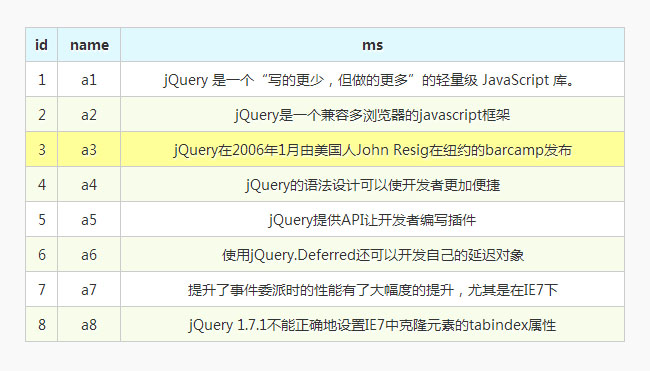 jquery实现隔行换色特效代码