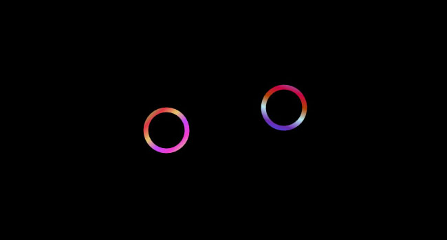 Canvas制作双环碰撞动画效果是一款在黑色背景下两个彩色圆环自由运动碰撞动画效果。