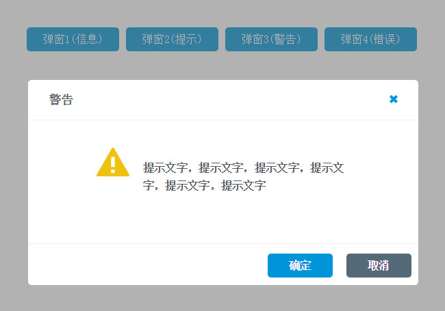 jQuery错误警告弹出框代码是一款支持自定义信息提示,警告提示,错误提示,成功提示。