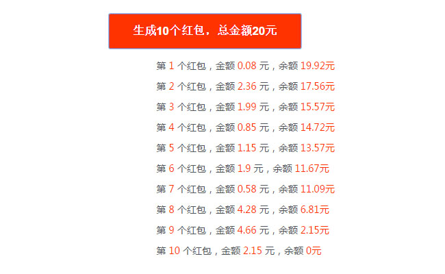 jquery+php随机生成红包金额数量代码基于jquery+php程序实现的发红包程序代码。