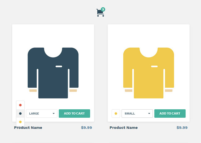jQuery HTML5添加到购物车代码是一款支持选择颜色跟样式的添加购物车代码。