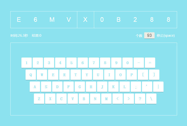 jQuery键盘打字练习特效是一款简易打字练习器,鼠标点击开始或者键盘空格键可以开始或者结束练习。