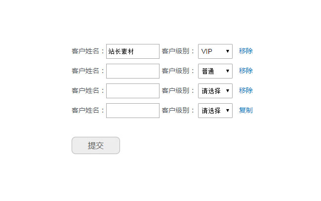 jQuery复制表单元素代码是一款鼠标单击功能按钮复制相同表单内容特效代码下载。