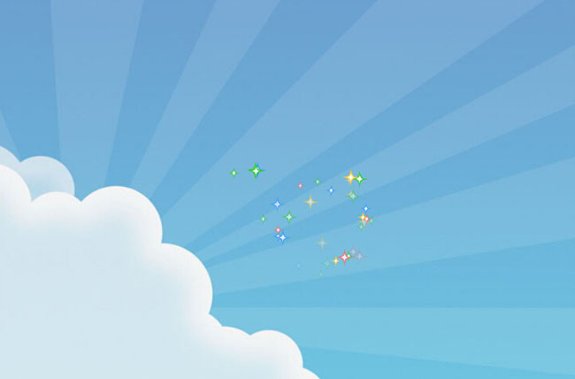 js鼠标拂过星星飘落动画特效是一款蓝天白云当做背景的当鼠标滑过光标星星飘落动画特效。