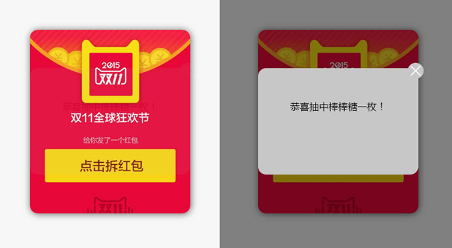 jQuery双11天猫拆红包抽奖代码