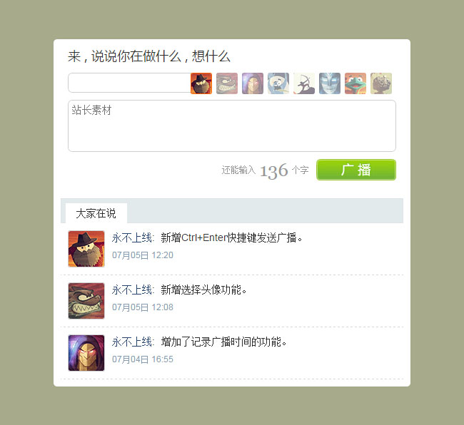JS留言板添加和删除代码是一款类似新浪微博广播留言板JS特效代码。