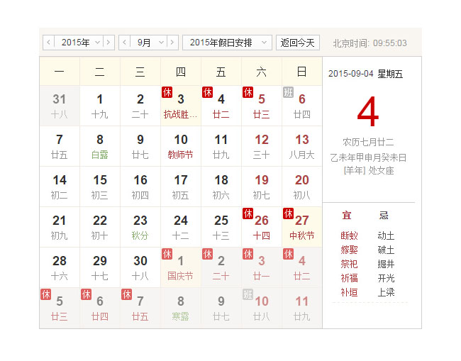jQuery仿百度万年历代码下载是一款基于jQuery实现的仿百度搜索万年历农历日期代码。