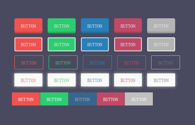 纯CSS3实现超酷扁平风格按钮特效是一款带有3D效果,粗边框按钮效果,只带边框不带背景的按钮效果以及阴影按钮效果等。