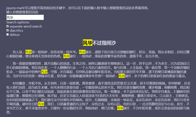jQuery.Mark关键字文本高亮插件
