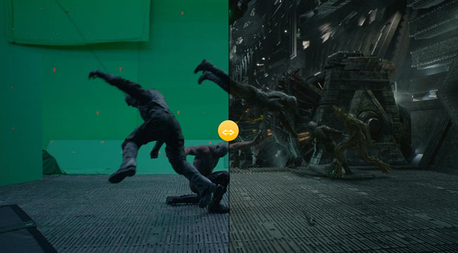 jQuery电影背景画面对比滑块代码是一款响应式图片对比比较滑块插件。