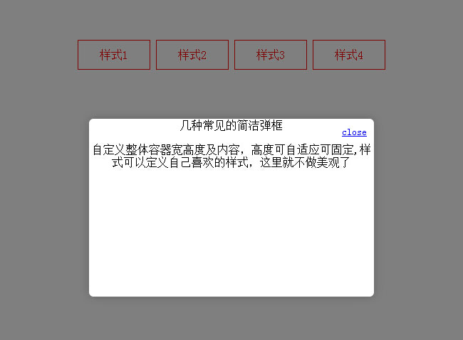 jQuery+CSS3遮罩弹出层动画代码是一款简洁实用的遮罩弹出层特效,使用非常简单,就两个标签,里面自定义内容和样式,四种常见效果。