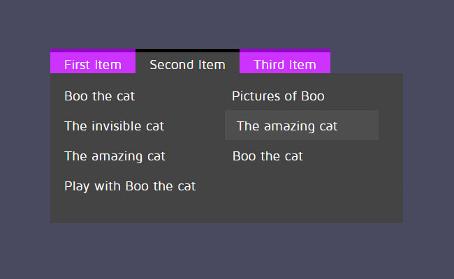 jQuery大型下拉菜单插件booNavigation是一款可以制作3列大型下拉菜单,并带有平滑过渡效果,以及鼠标滑过菜单项时的动画效果。