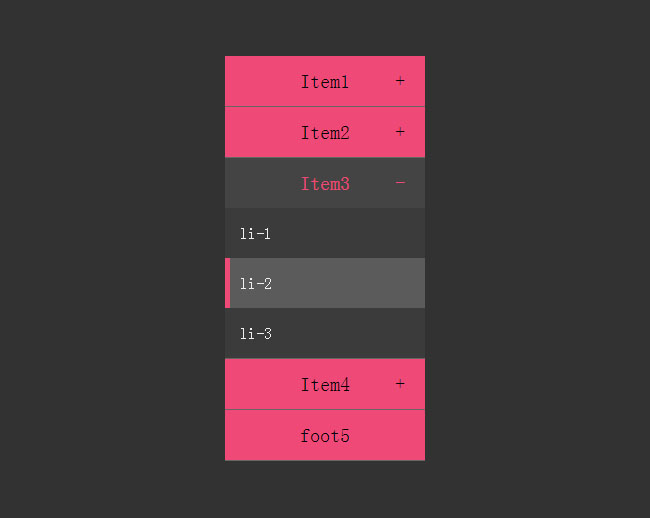 jQuery动画手风琴折叠菜单栏代码是一款粉红色风格动态伸缩手风琴代码。