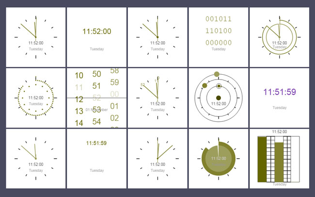 15款基于canvas时钟特效是一款通过配置参数来生成15种不同外观的时钟。