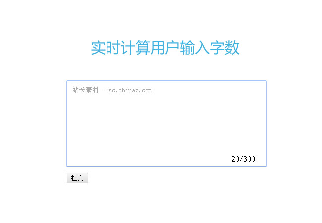 jQuery实时计算用户输入字数代码是一款当用户在输入框里面打字的时候自动计算字数,显示剩余可输入多少字数。